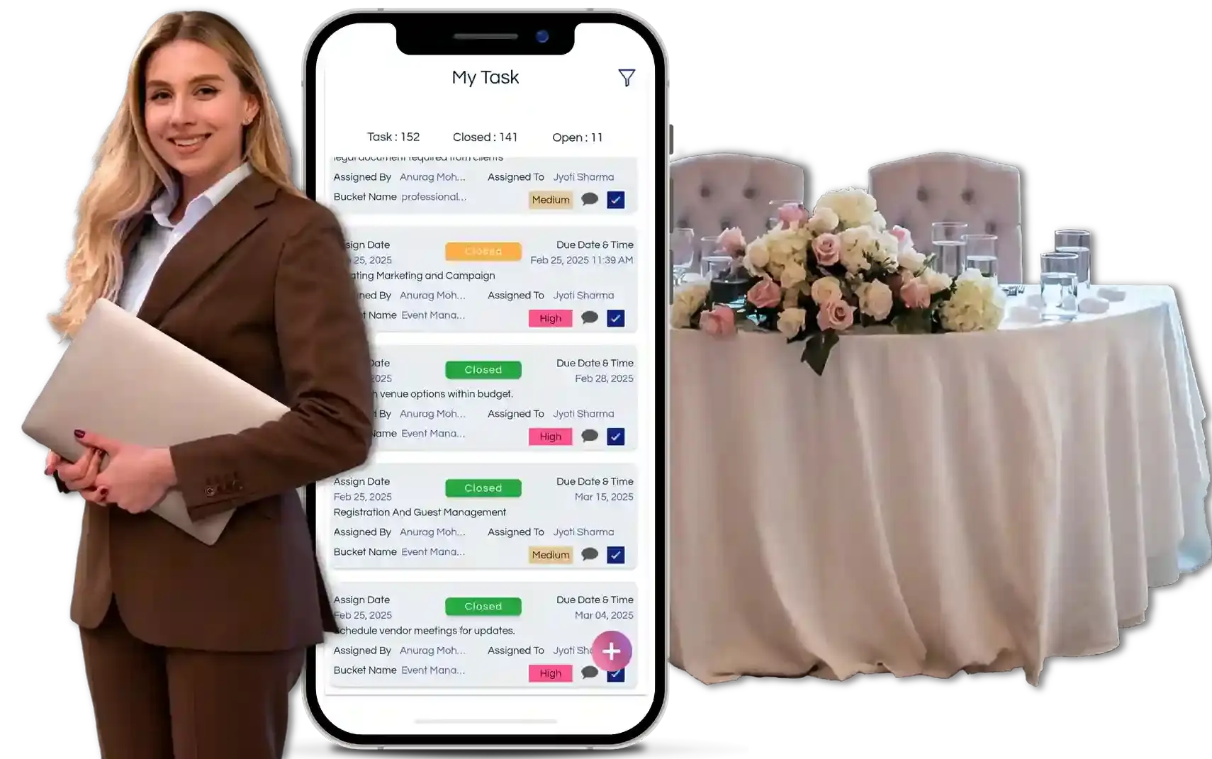 Task Tracker helps event planners effortlessly manage logistics, coordinate with vendors, and keep track of guest details, ensuring smooth event execution. With real-time updates and streamlined workflows, it guarantees every event runs seamlessly.