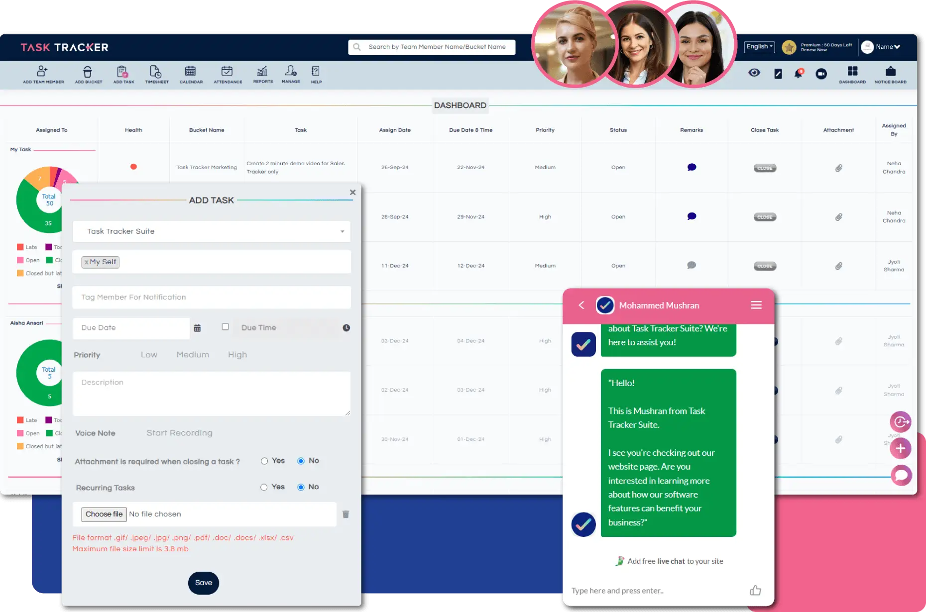 Task Tracker’s attendance management system helps event organizers manage staff availability, track attendance, and ensure timely participation. This leads to smoother operations, reducing confusion and delays during the event.