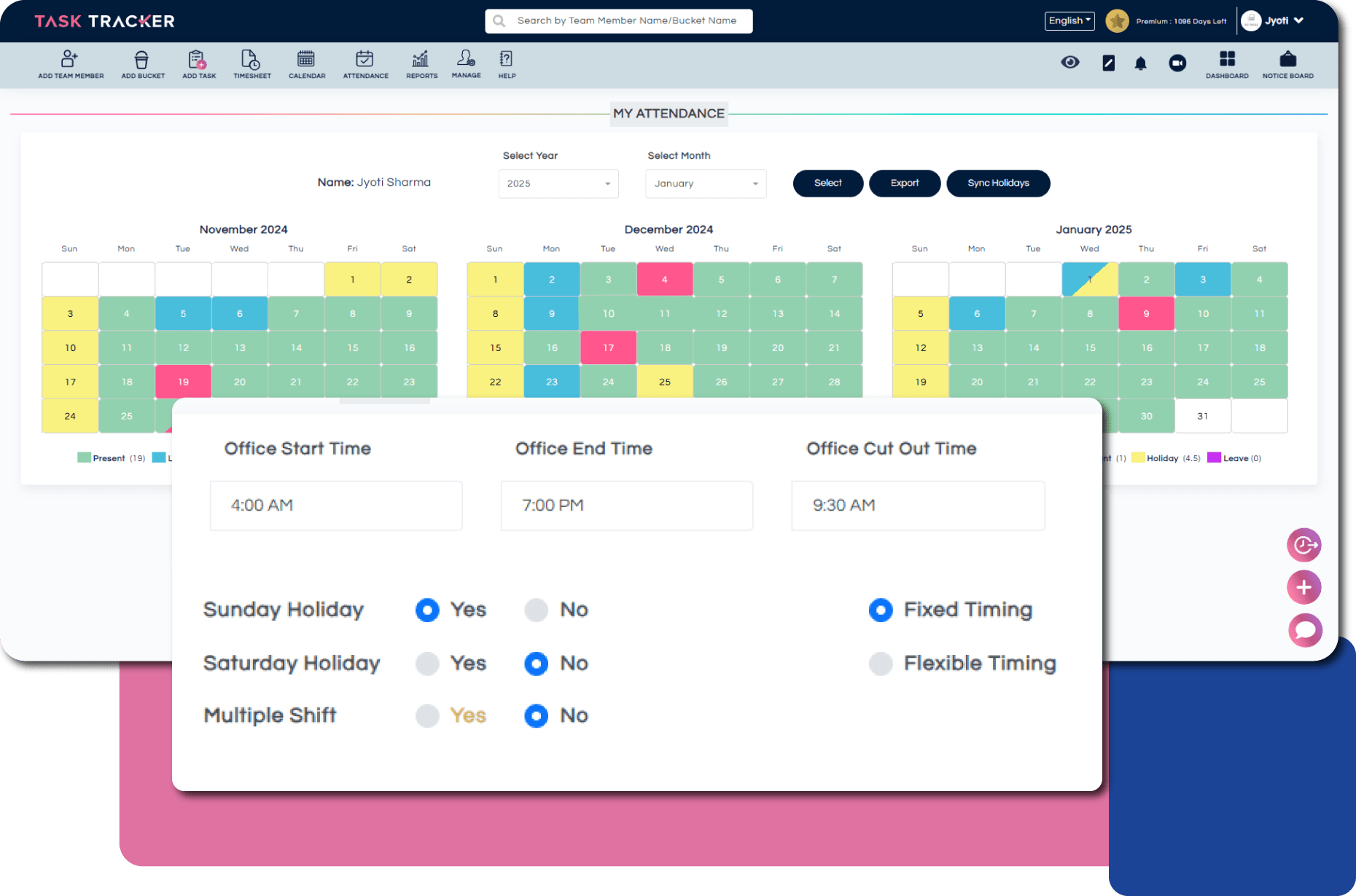 The attendance management system tracks employee shifts, geofencing, and productivity, ensuring accurate attendance records and helping optimize workforce efficiency on the production floor.
